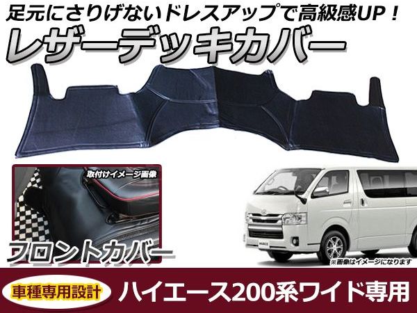 送料無料 車内 デッキカバー トヨタ ハイエース 200系 1型 2型 3型 4型 ワイド車 PVCレザーカバー 足元カバー フロント用 ガード シート 汚れ防止 内装 フットカバー
