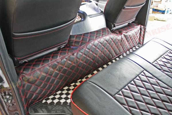 200系 ハイエース ワイド用 リア ダイヤカット レザー デッキカバー 赤ステッチ