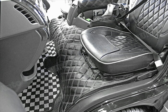 200系 ハイエース ワイド用 フロント ダイヤカット レザー デッキカバー 白ステッチ