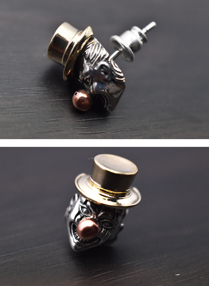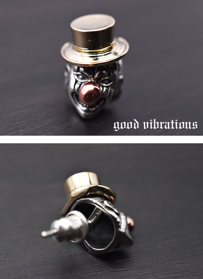 道化師クラウン(ピエロ)をモチーフにしたgoodvibrations(グッドバイブレーション)のシルバーピアスです。
